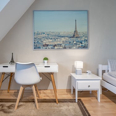 Gemütliche Schlafzimmer mit Schreibtischen für Ruhe und produktives Arbeiten.